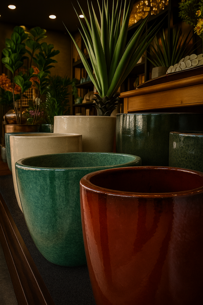 Vasos de chão têm o poder de transformar um ambiente com presença e personalidade, são peças que não apenas decoram, mas definem o espaço.